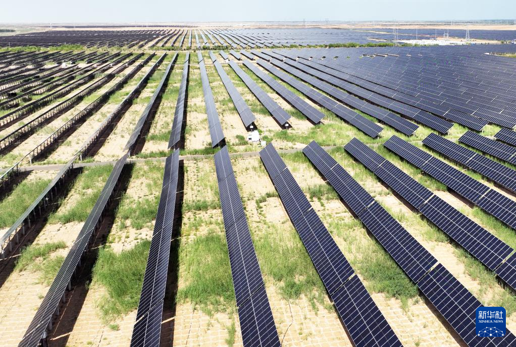 内蒙古乌兰布和沙漠光伏治沙项目区。新华社记者李云平 摄