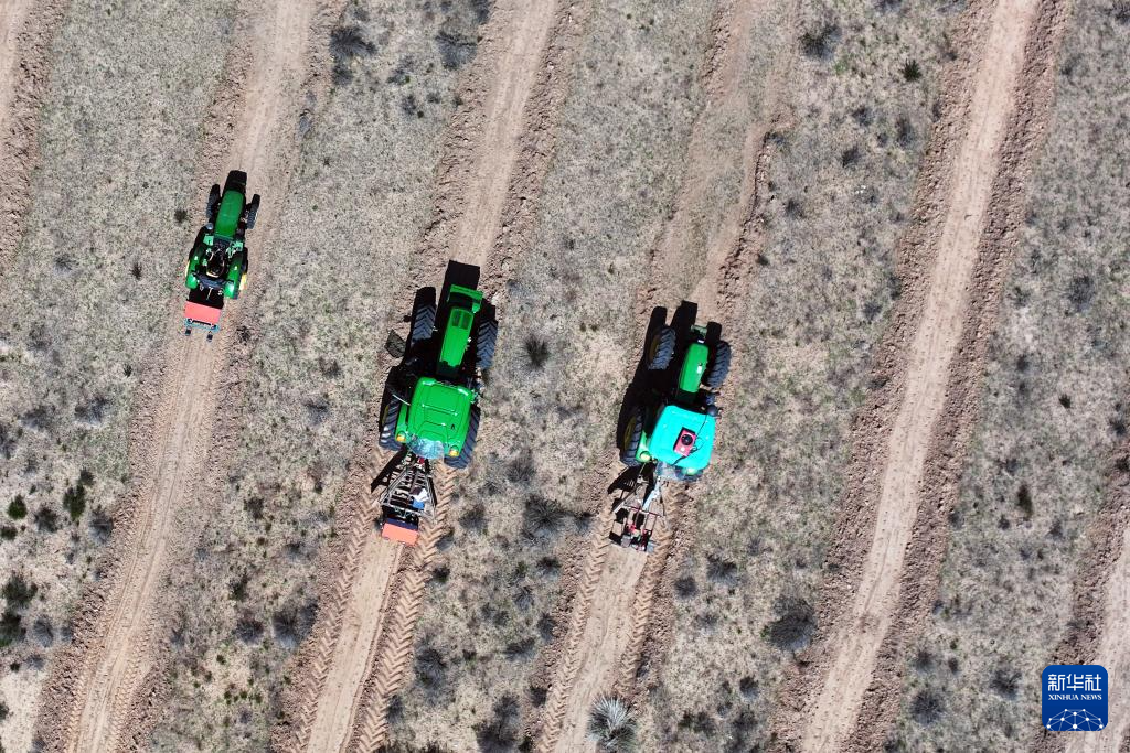 内蒙古库布其沙漠防沙治沙项目区种植柠条。新华社记者李云平 摄
