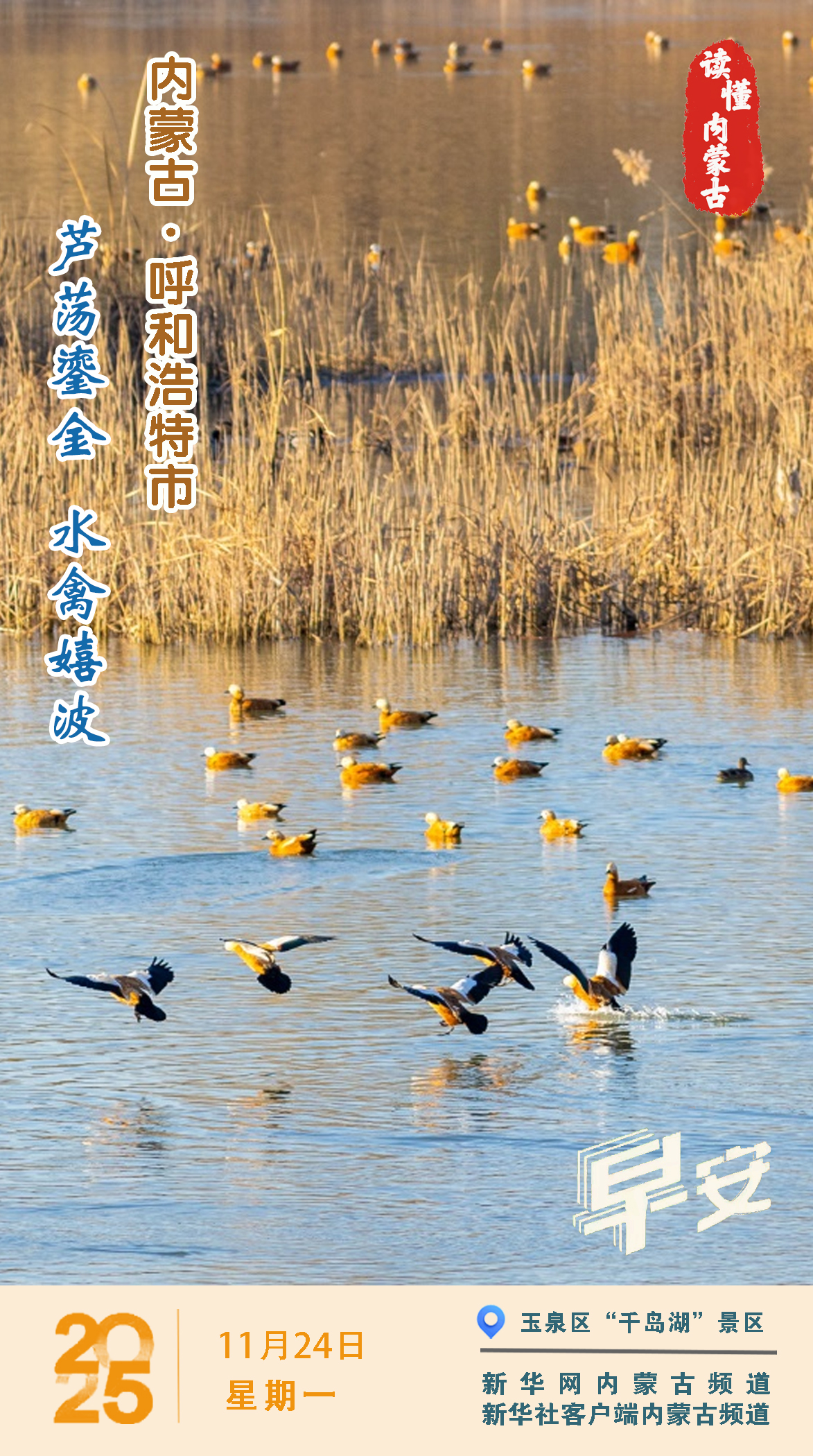 读懂内蒙古|2025年11月24日 芦荡鎏金 水禽嬉波 内蒙古呼和浩特市- 新华网内蒙古频道
