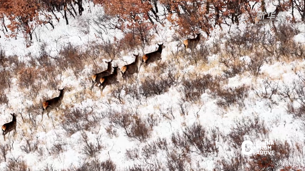 一场新雪落下,内蒙古自治区赤峰市巴林右旗赛罕乌拉国家级自然保护区披上银装。鹿群踏雪而行,时而低头觅食,时而驻足凝望,为寂静的林海雪原增添一抹灵动。