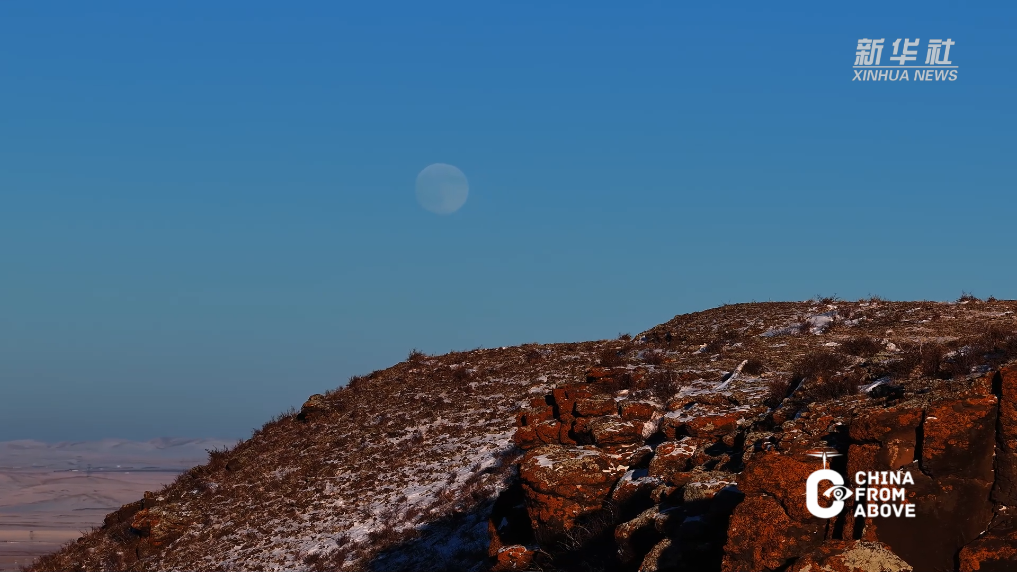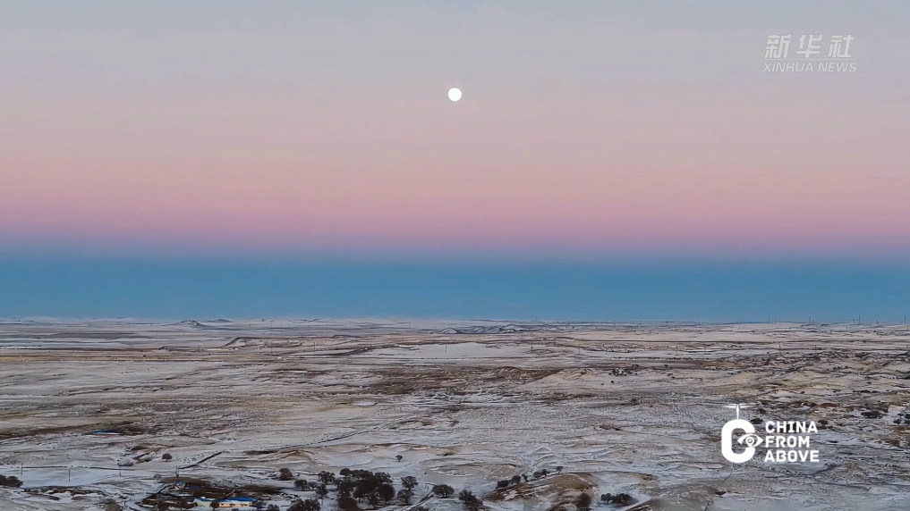 近日,内蒙古自治区锡林浩特市平顶山迎来了一场与超级月亮的浪漫邂逅。日光渐隐,超级月亮冲破冰雪勾勒的天际线缓缓攀升,最终悬于火山台地之巅。蓝粉色维纳斯带萦绕月侧,为这片亿万年火山喷发形成的多阶熔岩台地,镀上梦幻光晕。这场自然与地质的邂逅,定格下独属于锡林郭勒草原火山的冬日诗意,尽显北疆草原的生态之美与地质奇观。