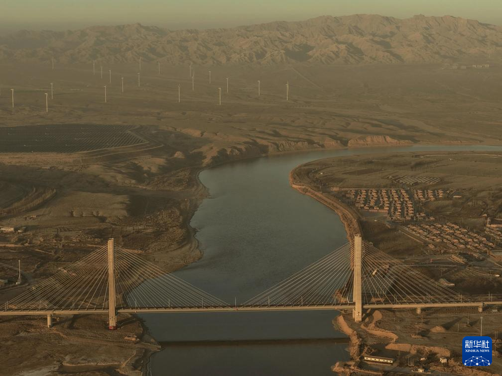 这是12月23日拍摄的包银高铁乌海黄河特大桥(无人机照片)。