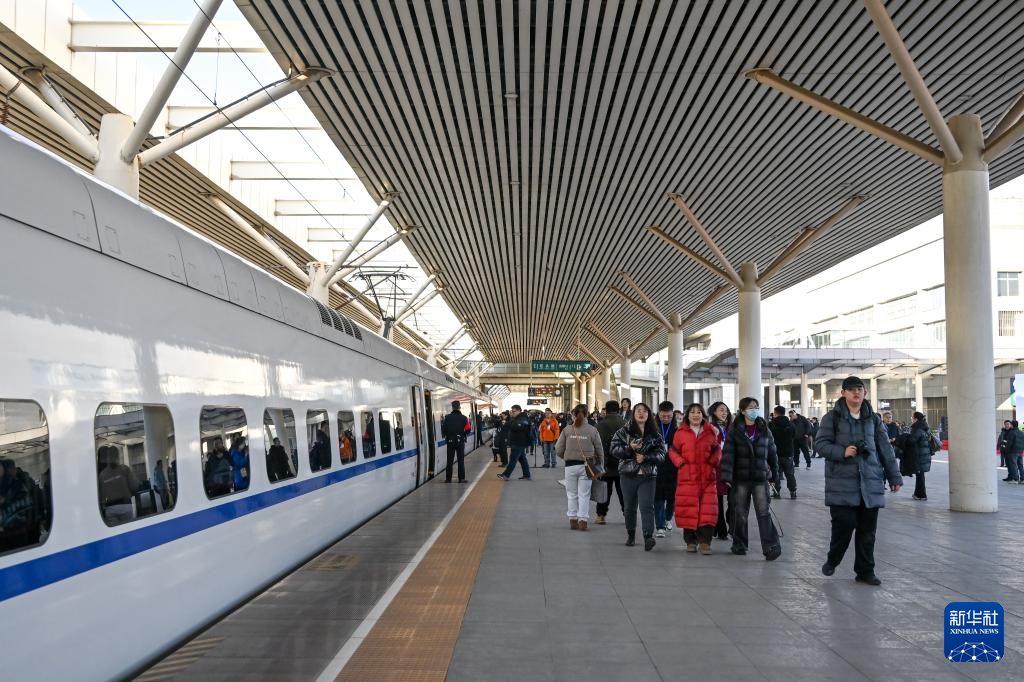 12月23日,旅客在包头站准备乘坐包银高铁首发列车D4667次动车组。