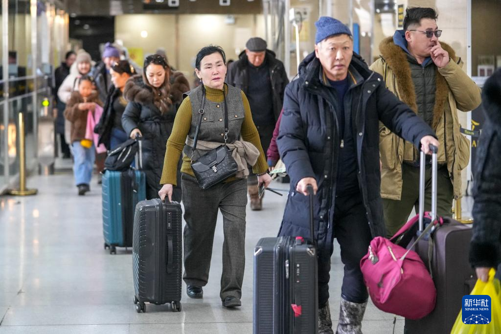 12月22日,旅客在内蒙古二连浩特公路口岸联检大厅准备出境。