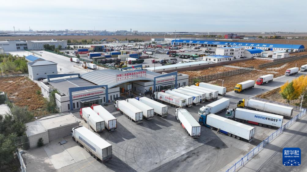 这是10月10日拍摄的内蒙古二连浩特口岸中蒙边民互市贸易区(无人机照片)。