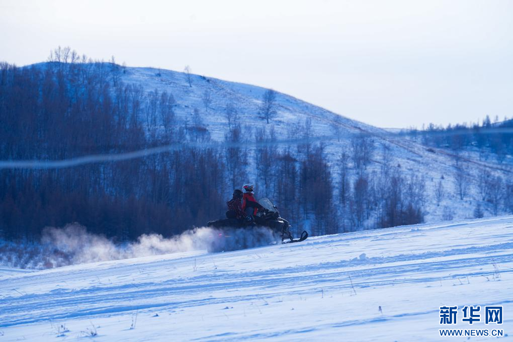 12月22日,游客在凤凰山景区体验雪地摩托。新华网发(张健 摄)