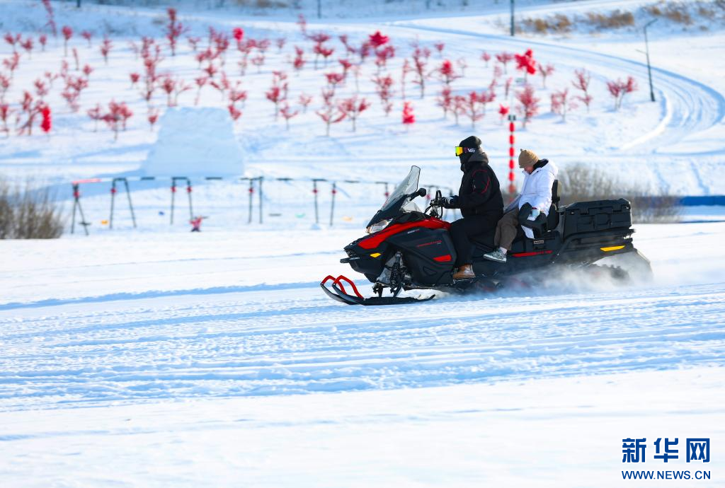 12月22日,游客在凤凰山滑雪场体验雪地摩托。新华网发(康文魁 摄)