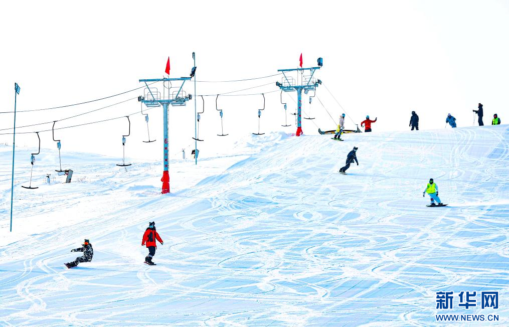 12月22日,游客在凤凰山滑雪场滑雪。新华网发(康文魁 摄)
