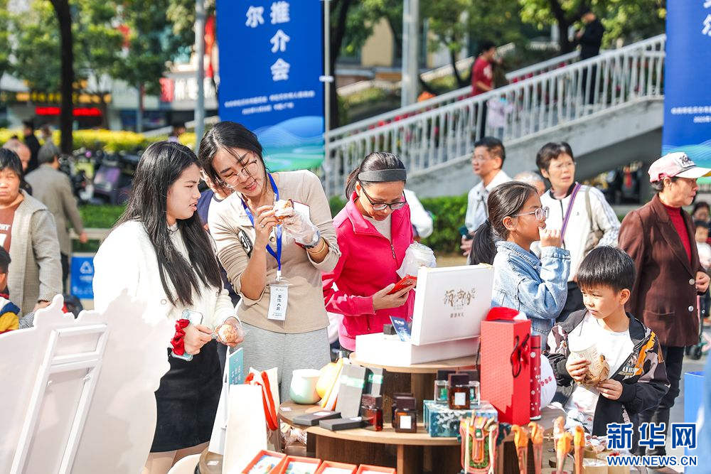 12月28日,在“我和草原有个‘粤’定”——呼伦贝尔大湾区推介会上,呼伦贝尔特色产品受到广州市民、游客关注。新华网发