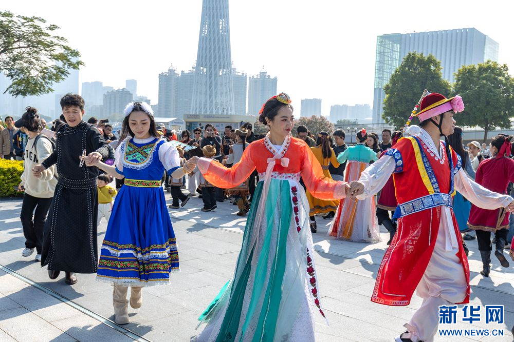 12月27日,在“我和草原有个‘粤’定”——呼伦贝尔大湾区推介会召开前夕,呼伦贝尔市乌兰牧骑队员在羊城广州为市民、游客献上具有草原风情的文艺路演。新华网发