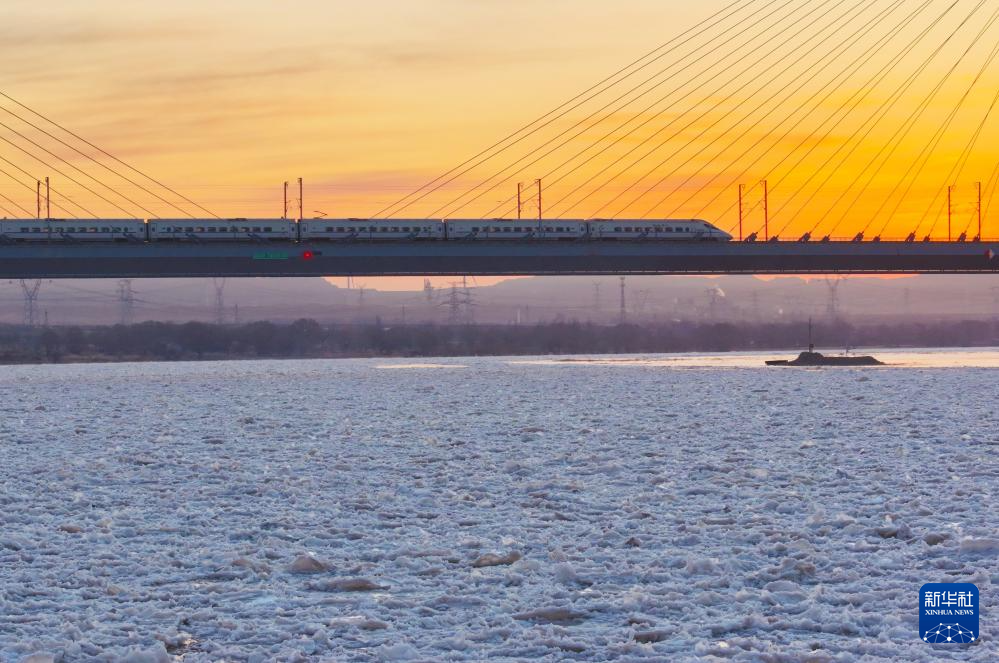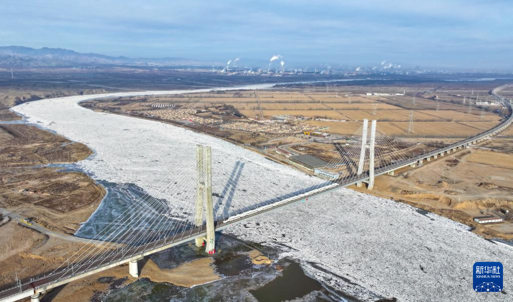 连日来,受低温寒潮天气影响,位于宁夏石嘴山市与内蒙古乌海市交界处的黄河出现冰封河段,万千流凌汇集在一起,宛如一条银色巨龙,构成一幅冬日画卷。