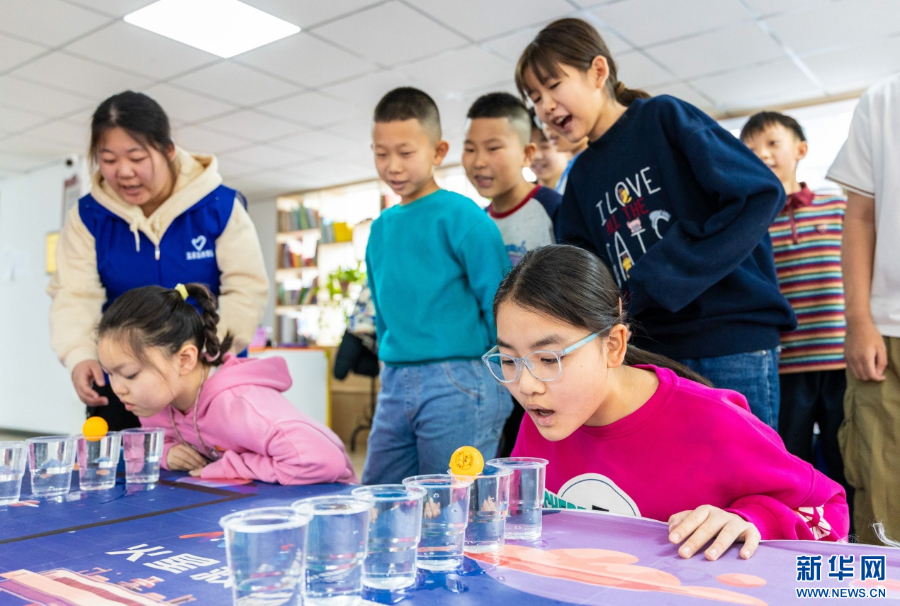 1月26日,在呼和浩特市玉泉区秋实社区,集中托管的学生在玩趣味游戏。新华网发(丁根厚 摄)