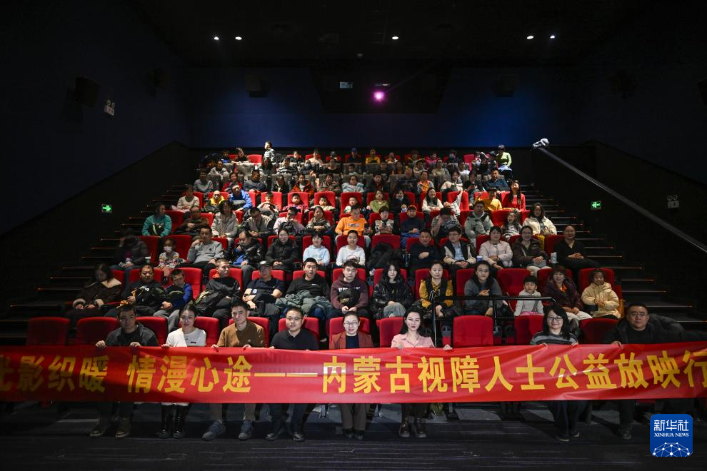 1月27日,“光影织暖 情漫心途——内蒙古视障人士公益放映行”活动在呼和浩特市回民区万达影城举行。残障朋友在工作人员引导下入座,欣赏无障碍电影《天降大任》与《看不见的顶峰》。影片画面配合生动口述,让视障人士也能感受电影艺术的魅力。