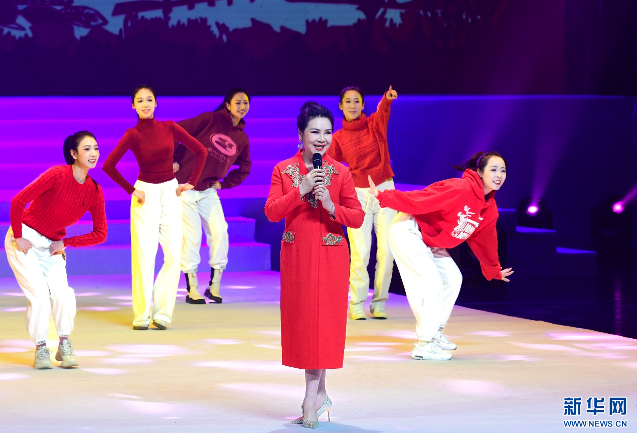 2月11日,演员在内蒙古曲艺春晚上表演曲艺串烧《石榴花开火一样红》。新华网发(王正 摄)