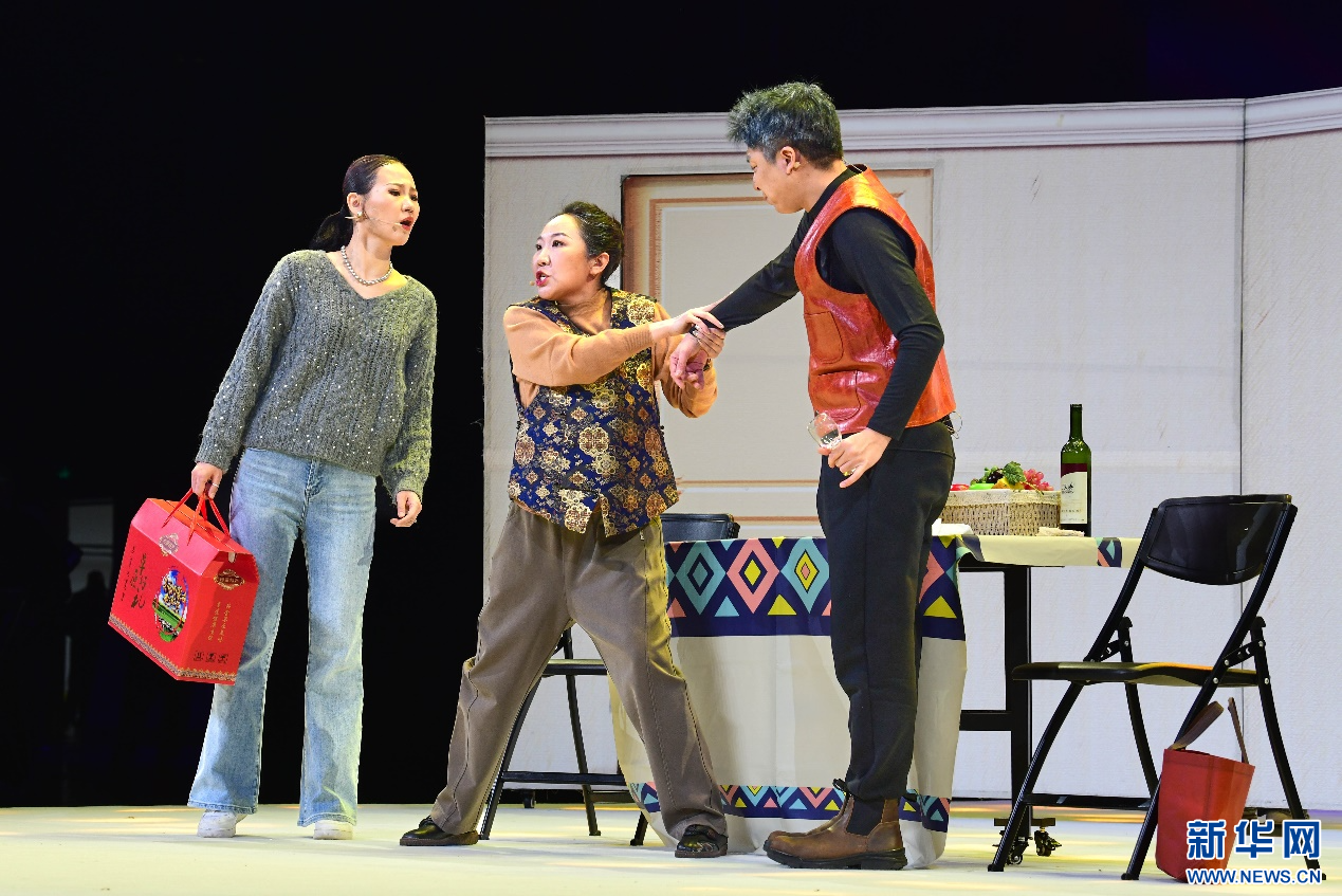 2月11日,演员在内蒙古曲艺春晚上表演小品《心动时刻》。新华网发(王正 摄)