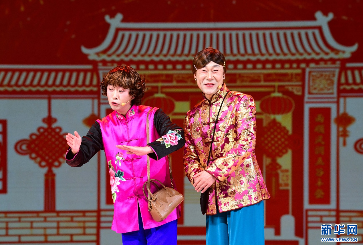 2月11日,演员在内蒙古曲艺春晚上表演呱嘴《王婆夸祥年》。新华网发(王正 摄)