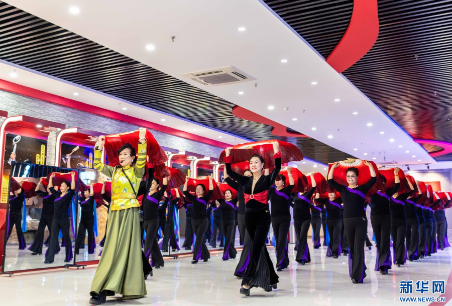 老年学员在呼和浩特市玉泉区老年大学民族舞课上学习。新华网发(丁根厚 摄)