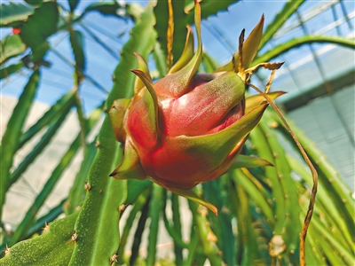 初春时节,走进兴安盟乌兰浩特市乌兰哈达镇高根营子嘎查的高标准设施农业园区,温室大棚内热气裹挟着馥郁果香扑面而来。一侧,翠绿的百香果藤蔓如瀑,圆润的果实垂挂枝头;另一侧,火龙果点缀于肉质茎上,红绿相间,煞是喜人。