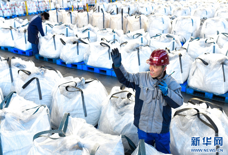 3月18日,工人在旭阳集团商都园区锂电负极材料成品车间作业。新华网发(王正 摄)
