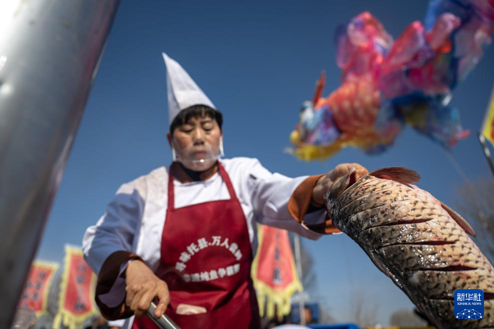 3月20日,2026年呼和浩特黄河开河民俗文化周在托克托县举行。百人锣鼓、舞龙舞狮、鱼灯巡游、炖鱼争霸、美食长桌宴等系列活动精彩纷呈,吸引众多市民和游客共赴“观开河、品鱼鲜、赏民俗、逛市集”的春日之约。