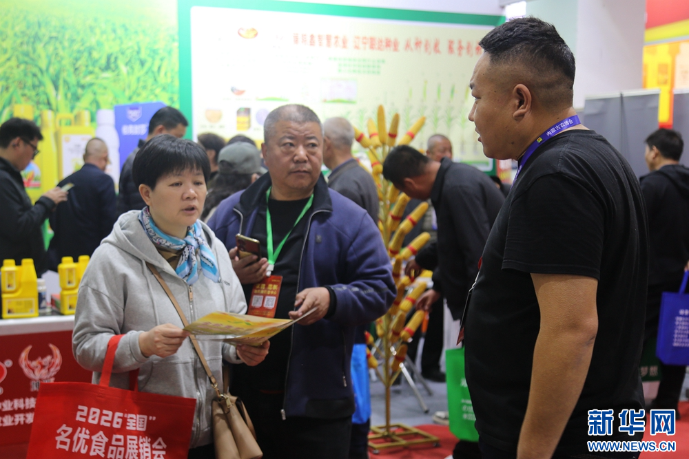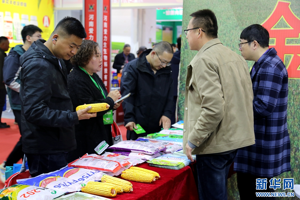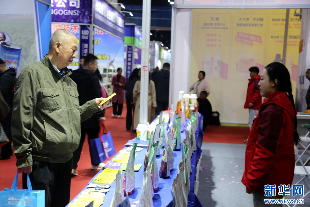 3月26日,在内蒙古国际会展中心开幕的第三十八届内蒙古农业博览会现场,养殖户在咨询、选购农资产品。新华网 石毅摄